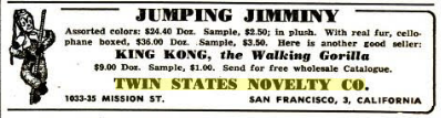 Without the county’s approval, Terrano couldn’t be involved with gambling at the Twin States. He returned to San Francisco where he dealt drugs and sold merchandise like Jumping Jimminy and King Kong toys out of his Twin States Novelty Company store.